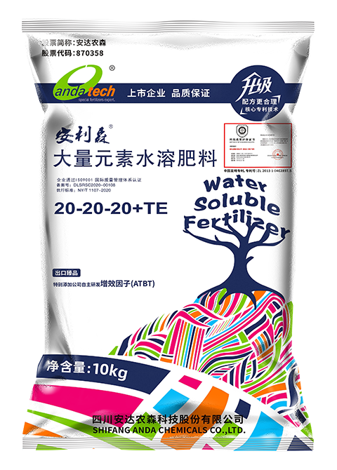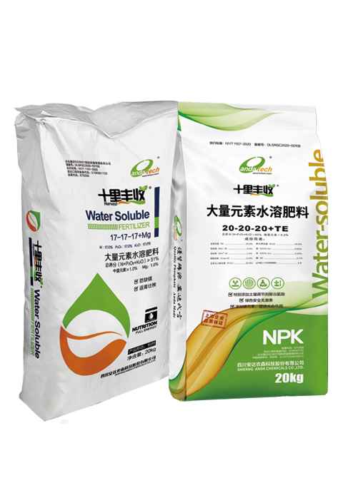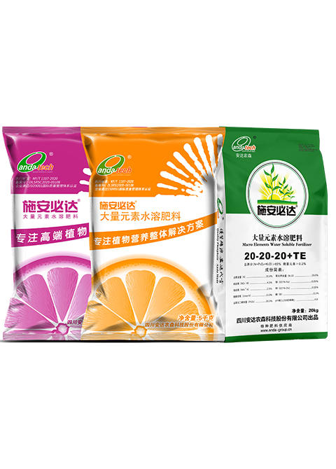 20-20-20+TE; 30-10-10+TE; 15-15-30+TE; 10-40-10+TE; 10-52-10+TE 19-19-19+TE 12-6-40+TE; 17-17-17+Mg; 10-5-35+Mg; 包裝規(guī)格 20kg/袋 25kg/袋 1、本品采用優(yōu)質(zhì)原料,結(jié)合行業(yè)領(lǐng)先生產(chǎn)工藝,快速水溶; 2、吸收利用率高,大大減少由于土壤等原因造成的肥料浪費; 3、營養(yǎng)搭配科學(xué)、均衡,并含有中量元素,作用效果快,可以有效預(yù)防或治療單一施肥引起的缺素癥; 4、增強作物光合作用效率,提高作物產(chǎn)量和品質(zhì)。